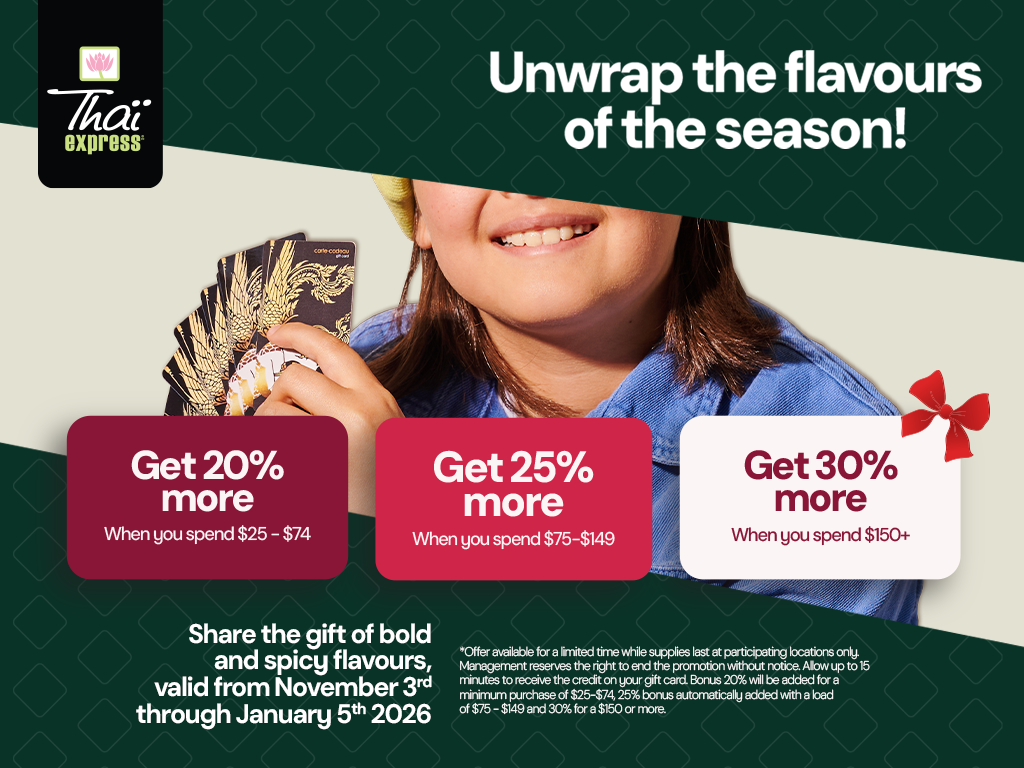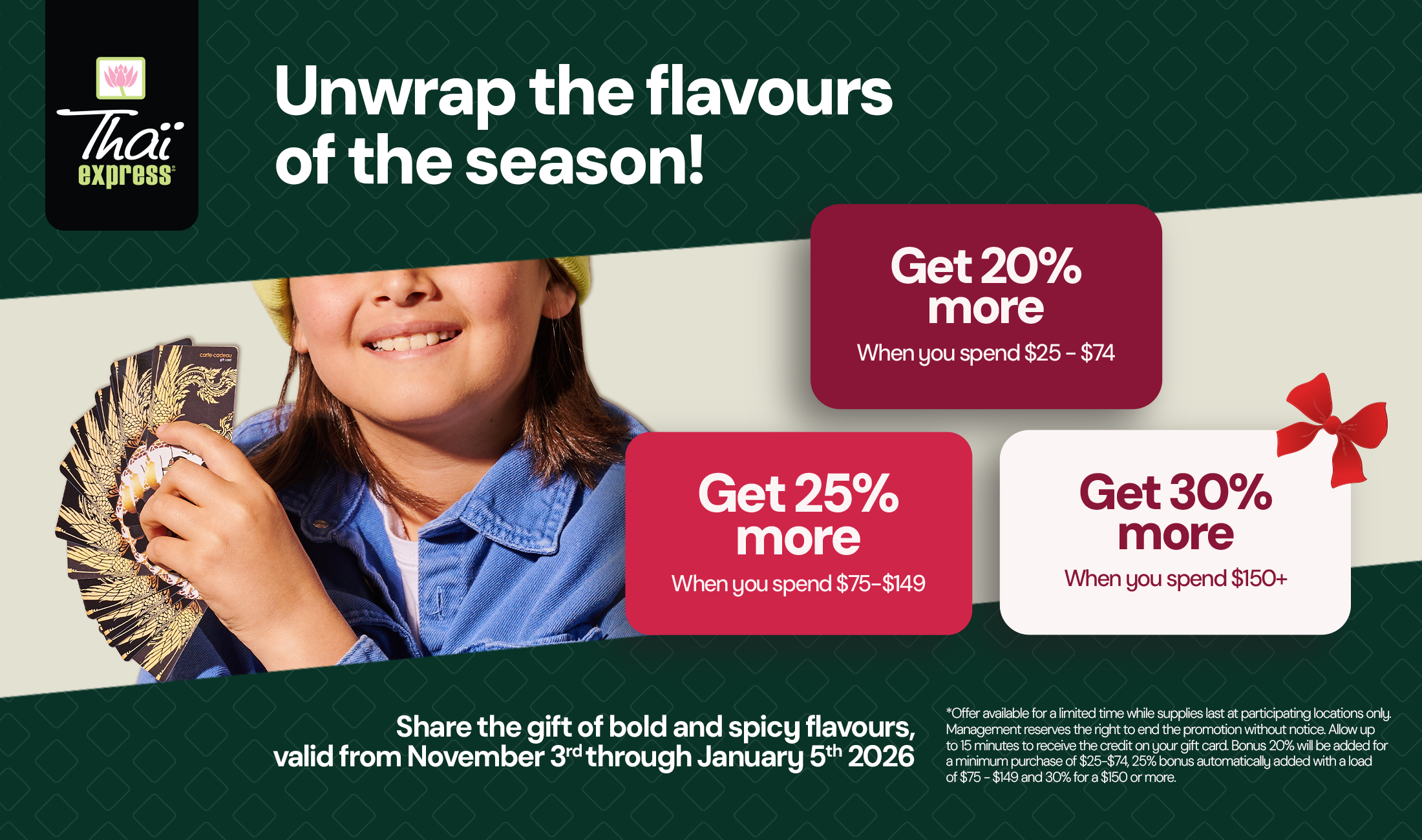 Canada Post Strike: Due to the ongoing Canada Post strike, physical gift cards cannot be shipped at this time. If you wish to purchase a physical gift card, we invite you to visit a participating restaurant near you. We apologize for the inconvenience.